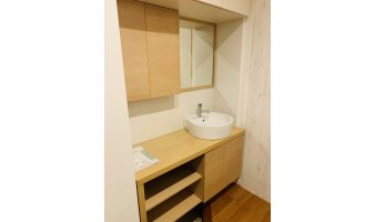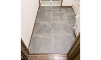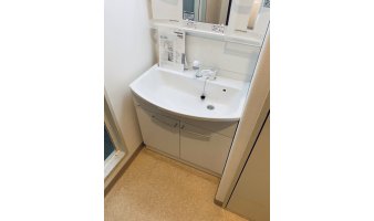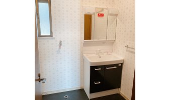 工事内容は洗面が壁紙、床の張り替えと洗面...