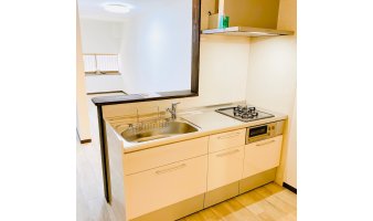 工事内容は壁紙、床の張り替えとキッチン新設にな...