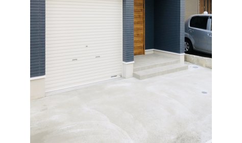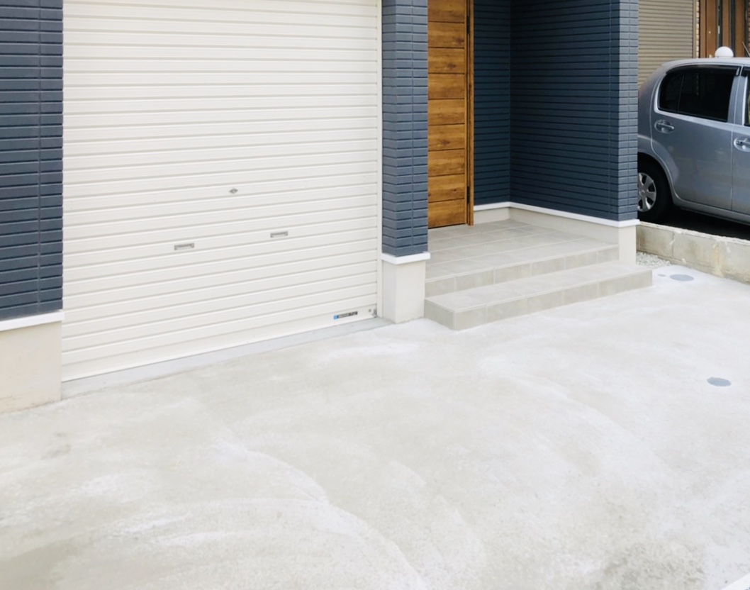 1軒家のガレージ部分の外構工事です。 今回は手入れがしやすく、強度もある コンクリートで施工させていただきました。