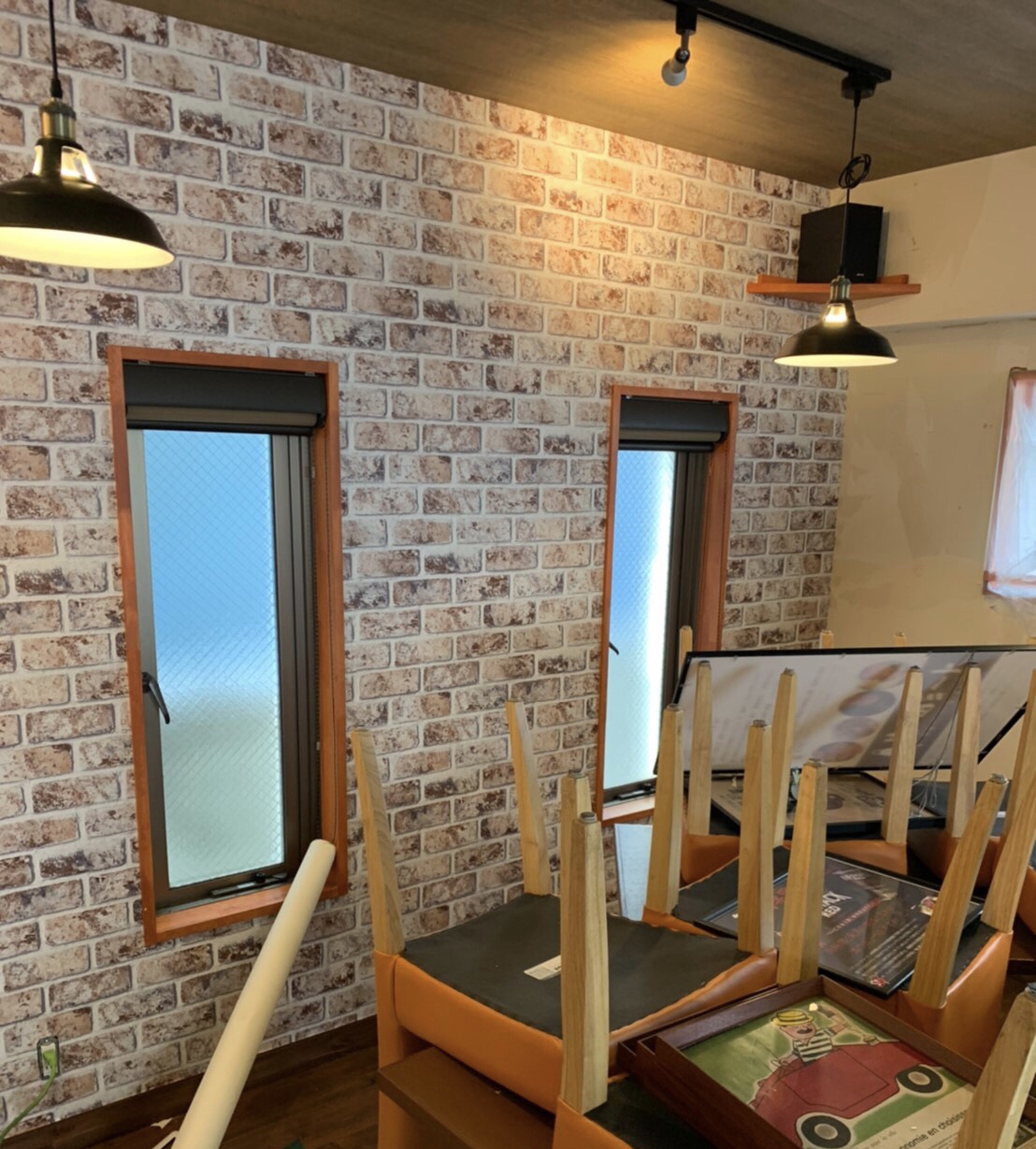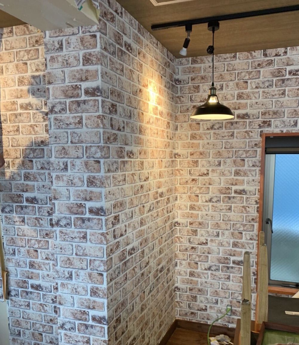飲食店の店舗様、クロス張替えを行いました。 シンプルな白から、レンガ調に張替え、 ガラッと印象を変えることができます!!
