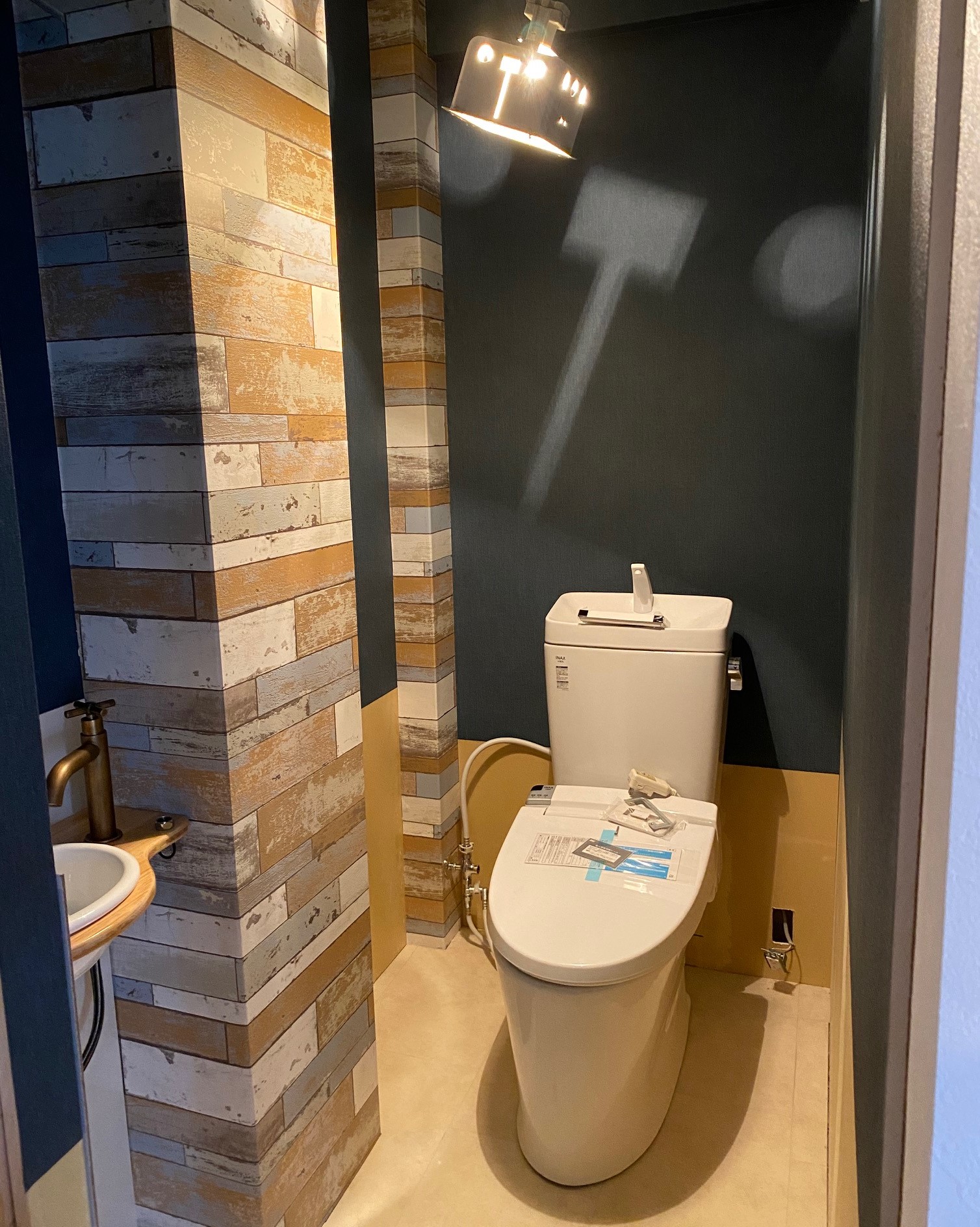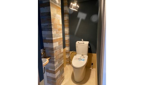店舗様のトイレ施工工事です。 お店の雰囲気に合わせ、ナチュラルウッドをポイントで使用し、 落ち着く空間になるようにさせていただきました。