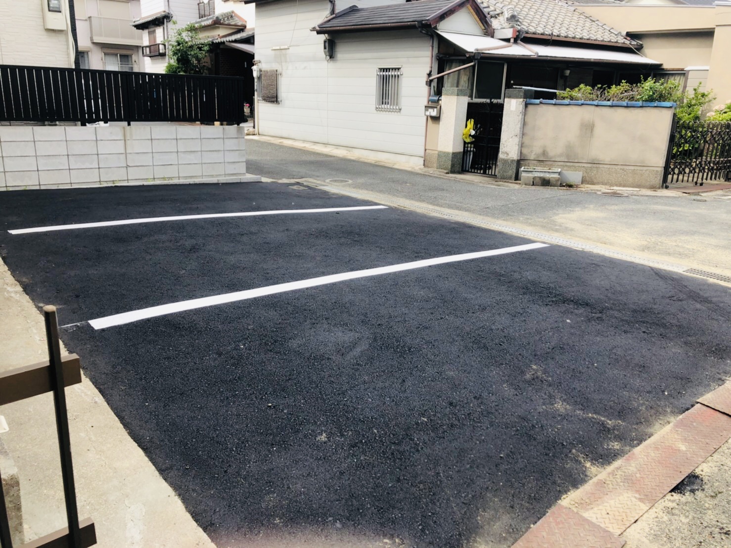 ガレージで利用されるため 土の地面をアスファルトで舗装しました。 土とは違い、雨などで足元がぬかるむこともありません!