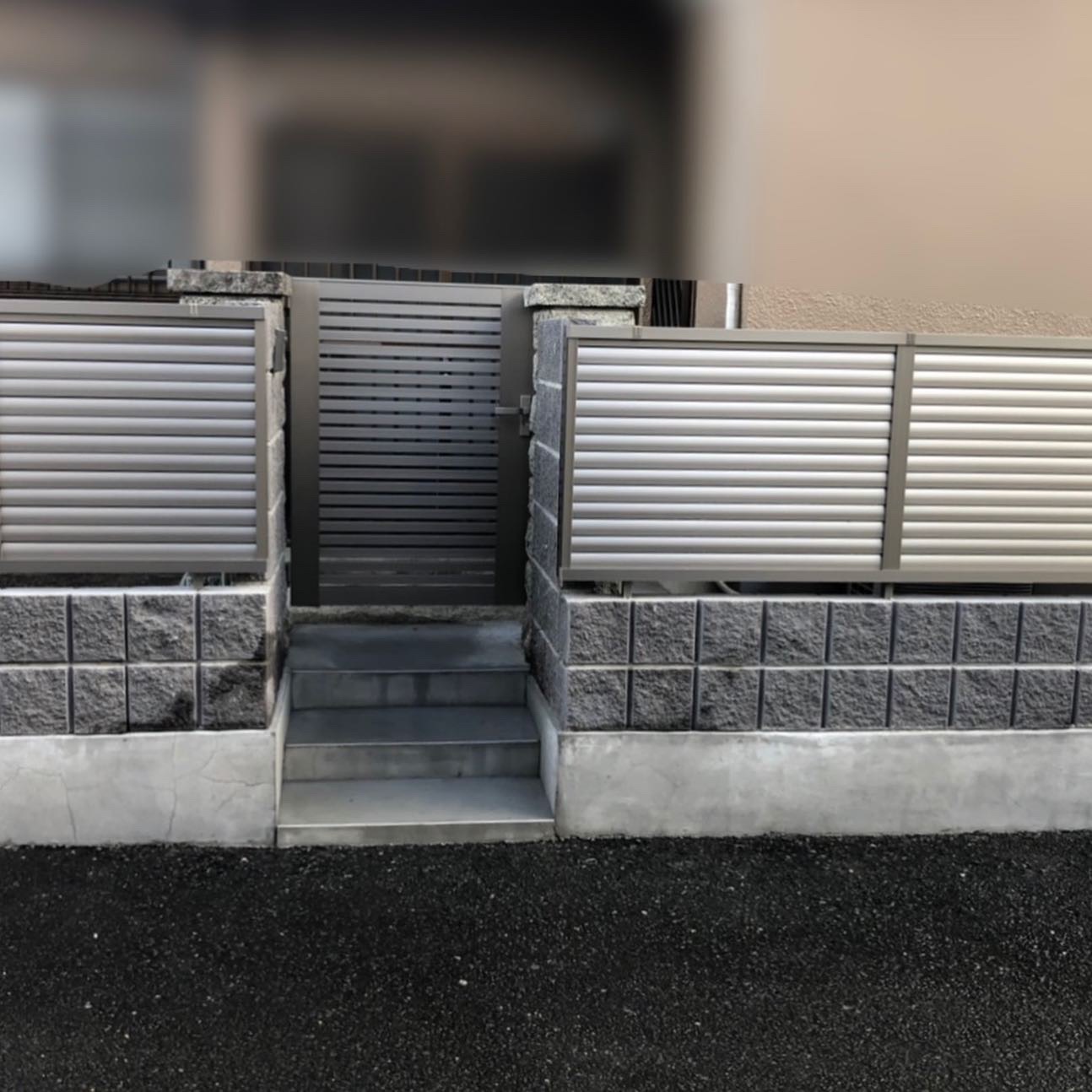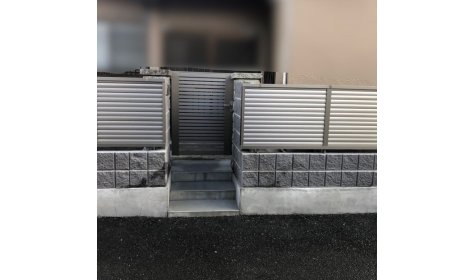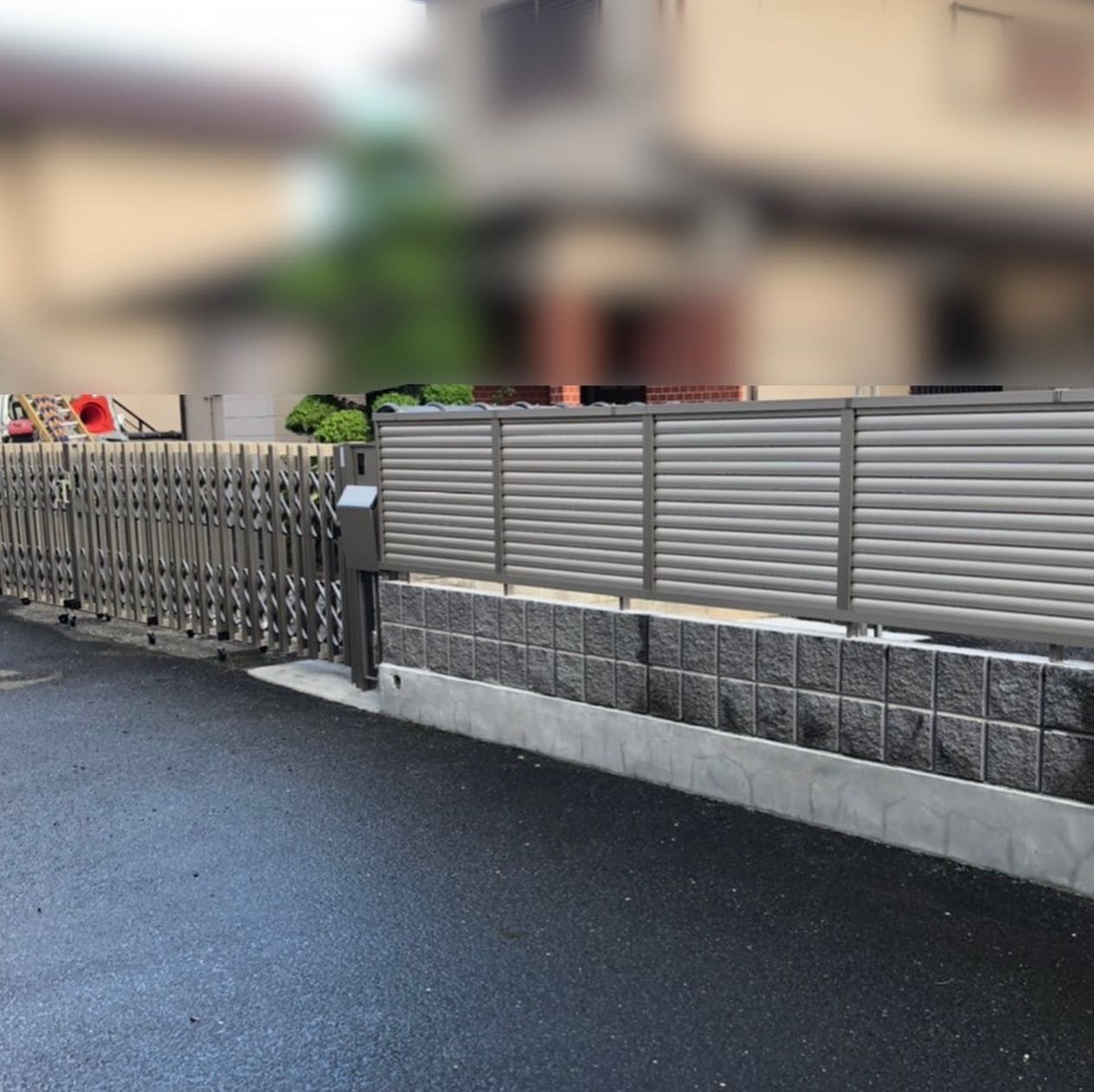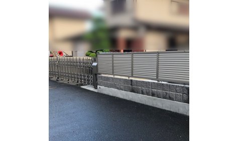 戸建て住宅の外構工事です。 工事内容は、 ・リブブロック積み ・目隠しフェンス取り付け ・アコーディオンゲート取り付け ・ブロック基礎左官仕上げ ・機能門柱設置 になります。 ご自宅の車庫の部分とそれ以外の道路からの目隠しをご希望でした。 目隠しフェンスの中に出入りできる門を取りつけ、 勝手口から直接道路側に通れるようになりました。
