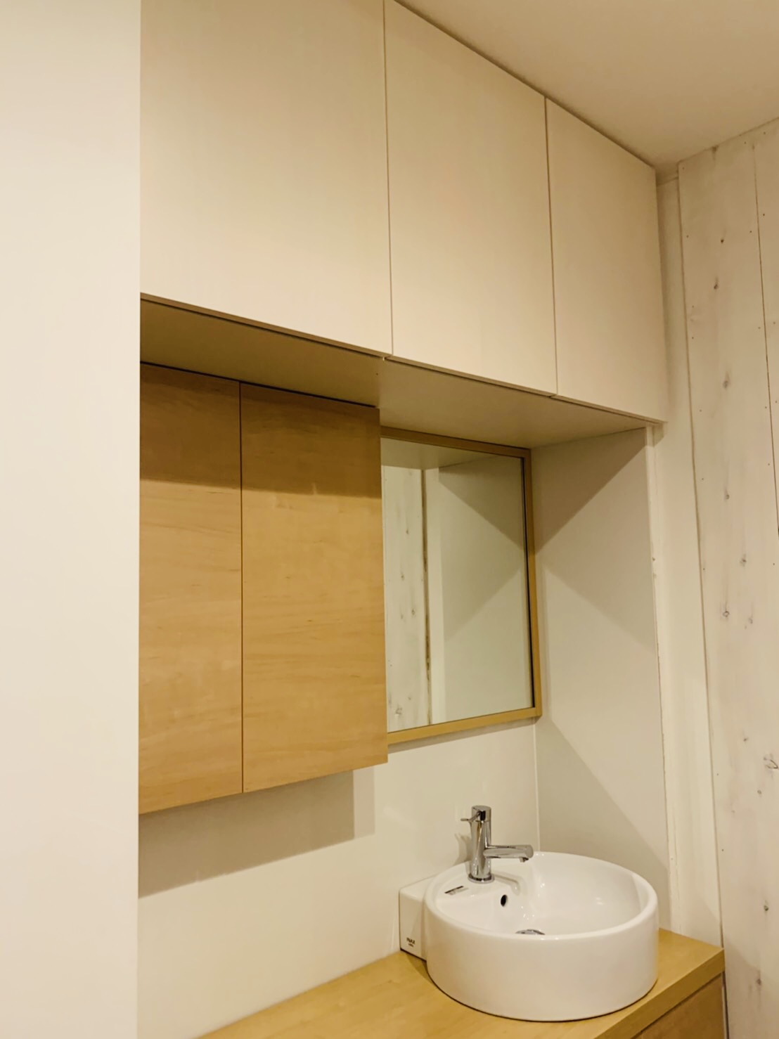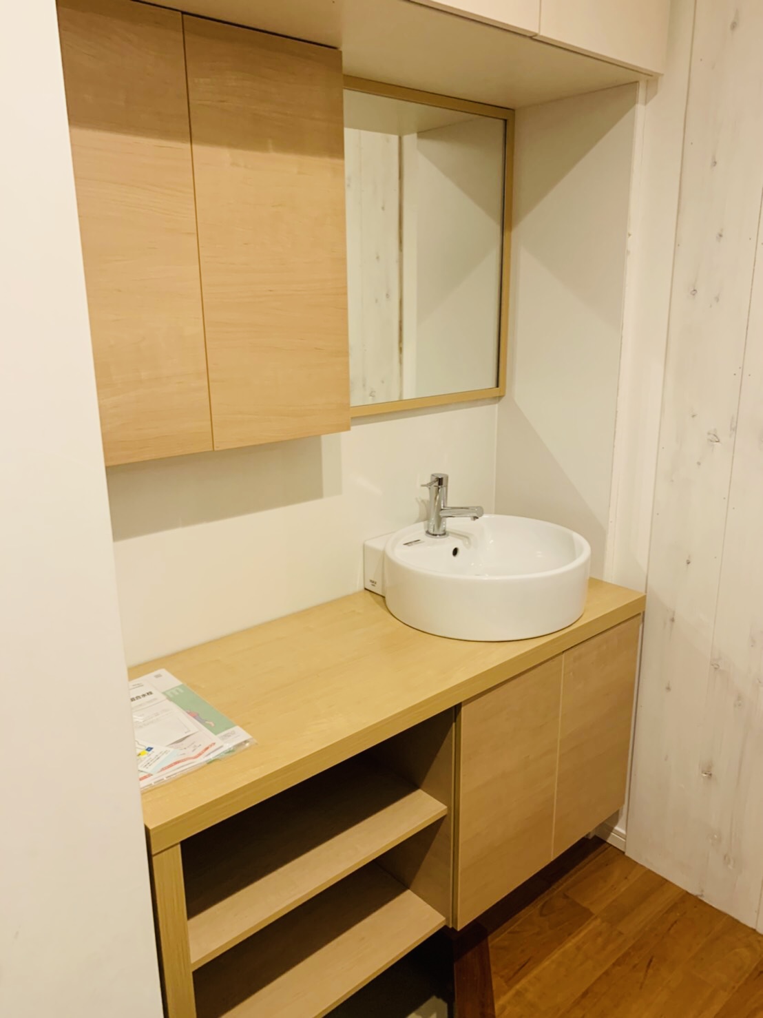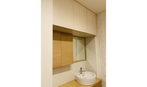 玄関に入りすぐの場所に洗面取り付けのご依頼でした。 コロナウイルスの流行などにより 手洗い、うがいなどがとても大事とされるこんな時期だからこそ 玄関先で手指の菌を洗い流し、お部屋に持ち込まない為には 玄関に洗面があるととても便利です! 洗面横、上部にも収納をつくり、 洗面を設置した分の収納スペースも確保しました。