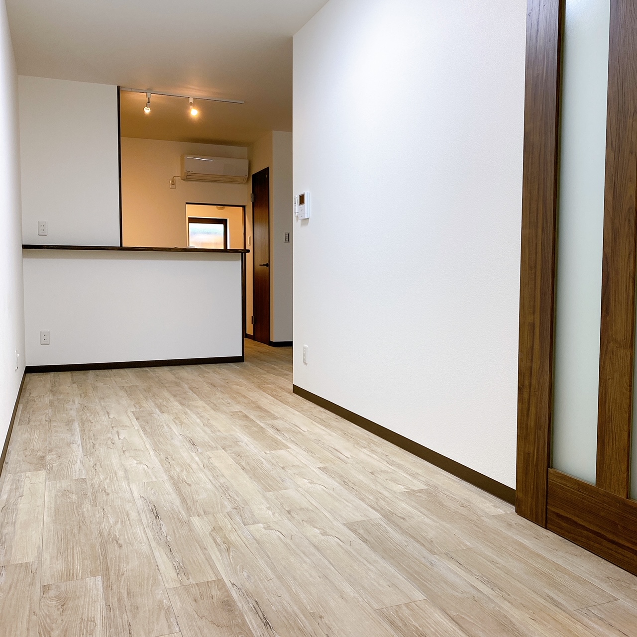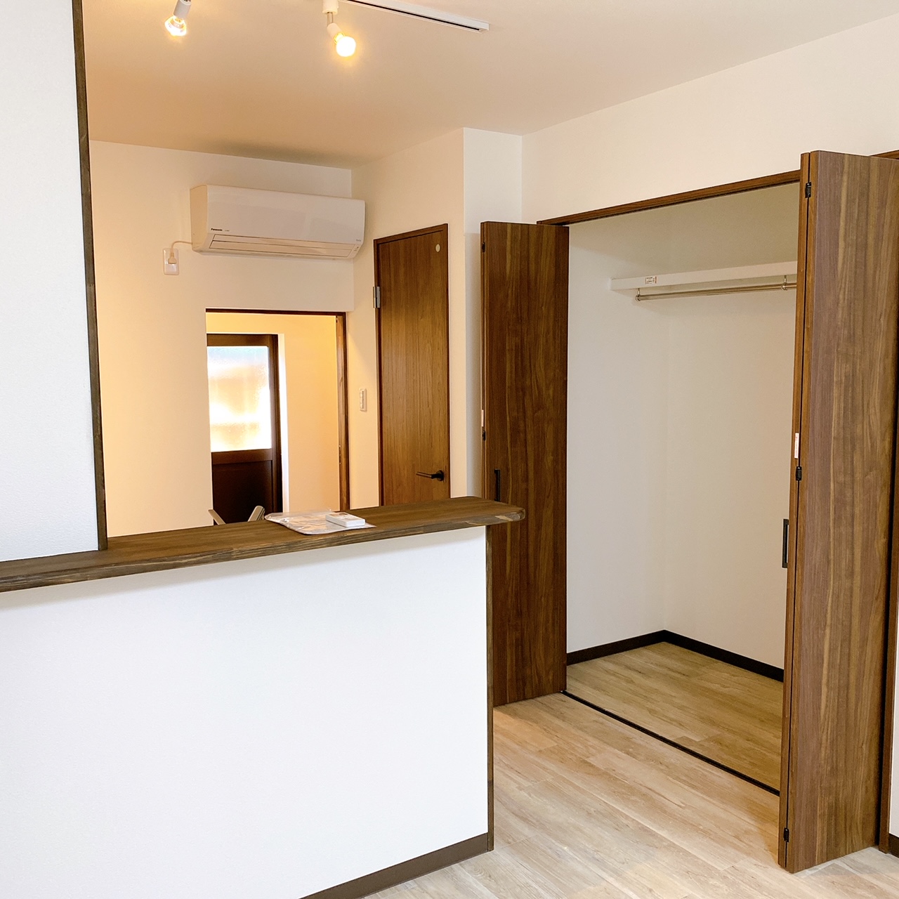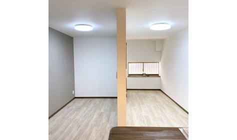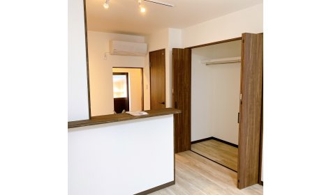 長屋住宅リフォームの内装工事です。 既存のお部屋を取り壊し、1つの広い空間を間仕切りもう1部屋違う空間を造るようにしました。 ワンルームながら間仕切ることでお部屋の使い方が色々考えられます。 キッチン横には衣類や日用品など様々なものを収納できる大きなクローゼットを配置しています。 写真は①玄関側からのお部屋、②キッチン側からの間仕切ったお部屋、 ③収納スペース、④施工前になります。