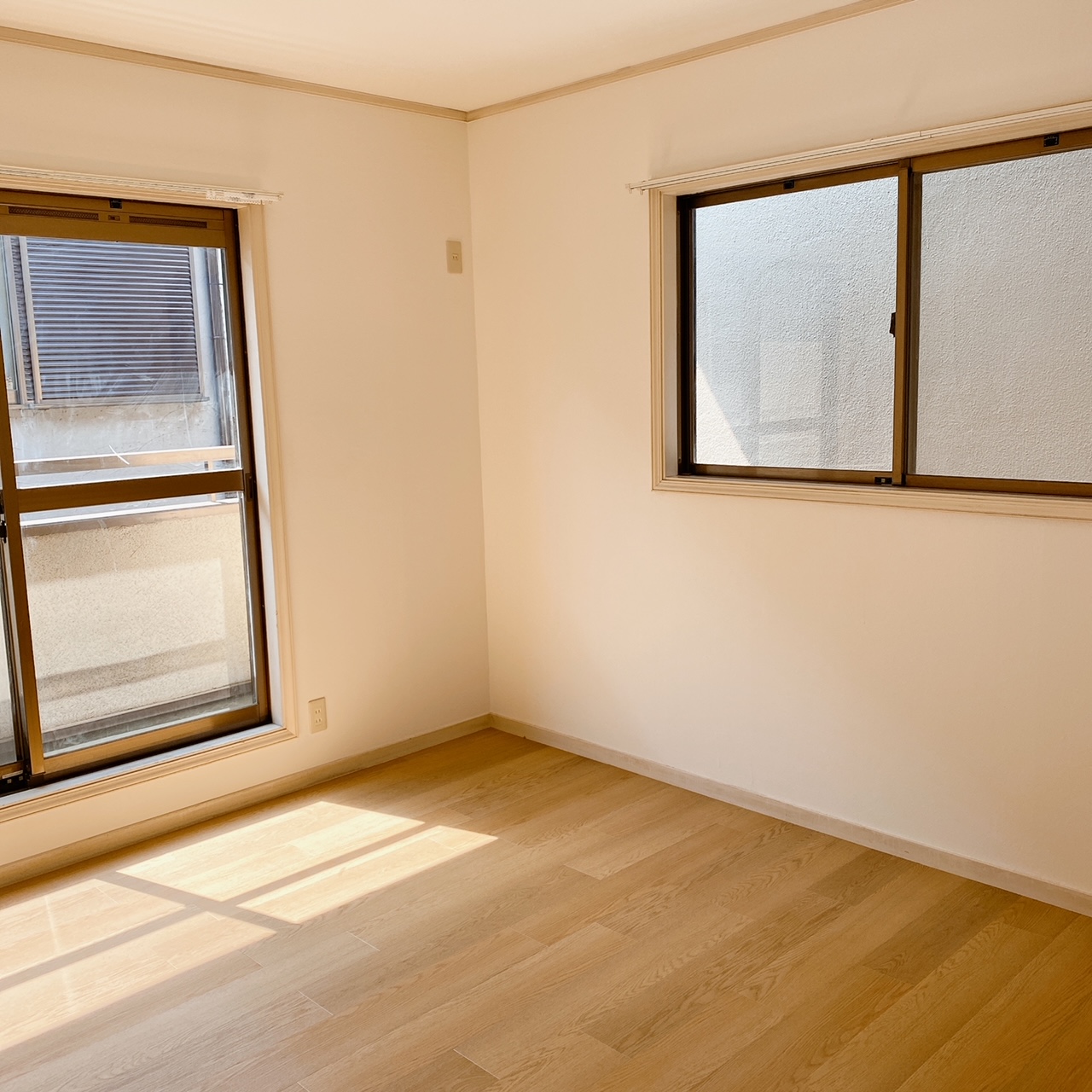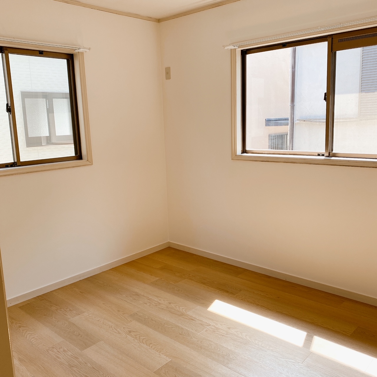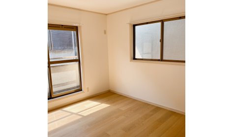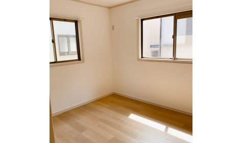 1軒家リフォーム工事の2階洋室2部屋です。 工事内容は壁紙、床の張り替えとカーテンレール等の付け替えになります。 写真は上部が施工後、下部が施工前のものです。 壁紙、床の張り替えでお部屋の印象が変わります。