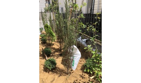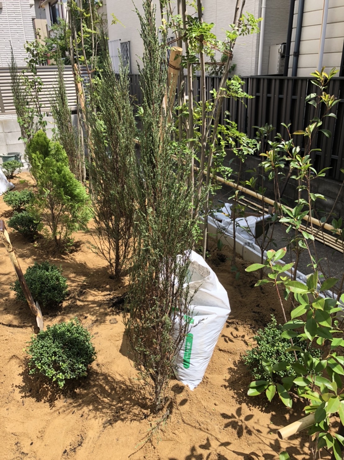 敷地内の外構スペースに植栽工事を行いました。 写真は施工前、施工後のものになります。 植栽により、インテリア性や周囲からの適度な目隠し効果が得られます。