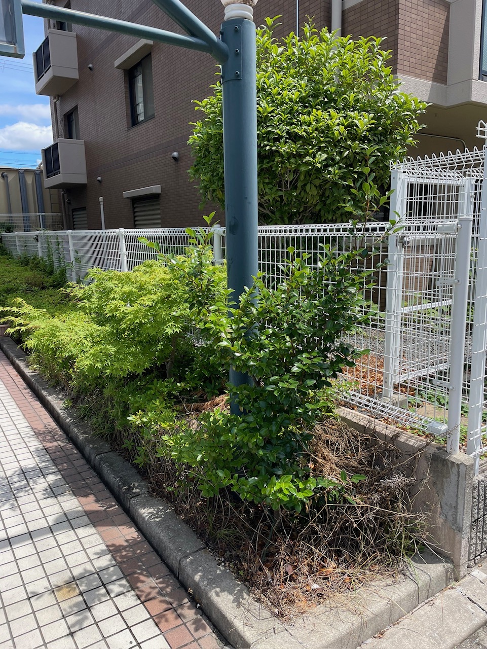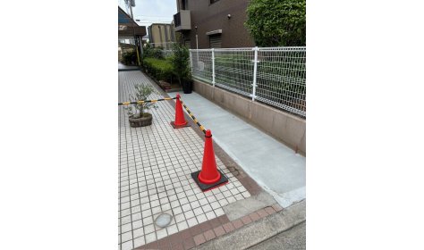以前花壇だった部分を取り壊しコンクリートに! 植栽、花壇は見た目がとてもきれいですが、 定期的なお手入れが必要となる為、 駐輪場としても使用できるコンクリートを打ち、 すっきりをした外観に! もちろんコンクリートから新たに植栽や花壇を造りたいという ご希望も承ります!!