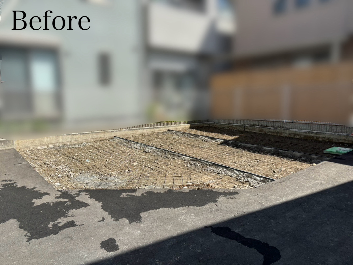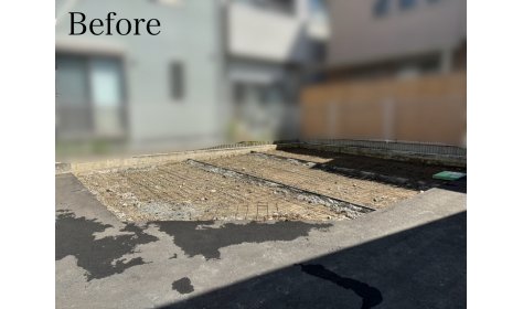 花壇を撤去後、ガレージとして使用するため土間を打ちました。 ご自宅や店舗、事務所のこの場所の使い方を変えたい! 使い勝手がよくなるよう相談したい!!などのお悩みはお気軽にご相談ください。