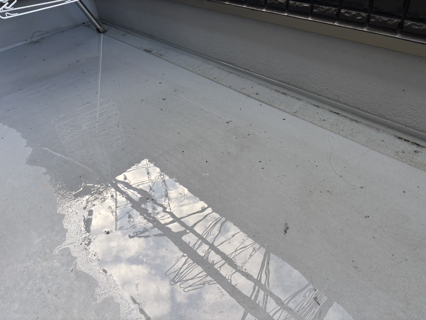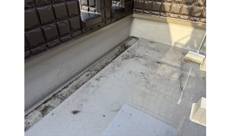 今回はベランダの排水溝につまった汚れや埃、枯葉などで 排水ができない状態になっていました。